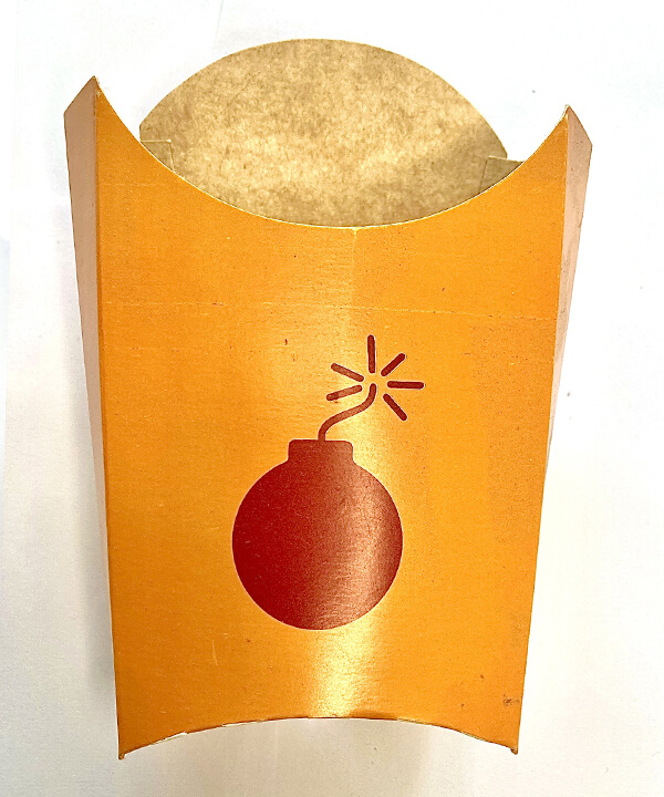 Envase de cartulina duplex 240grs. Impreso a 1 color para Papas Grandes tipo Mc’Donalds
